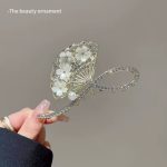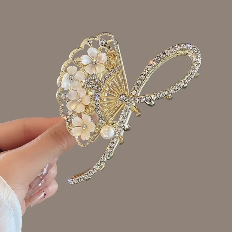 کلیپس موی سورندی مدل SAT-104 با طراحی فانتزی شامل گل و فیتونک، تزئین شده با سنگ‌های زیبا و مروارید، انتخاب ایده‌آلی برای مراسم خاص بخصوص عروسی می‌باشد. این محصول با رنگ طلایی باکیفیت و ساختار محکم، هم زیبایی و هم عملکرد عالی دارد. مناسب برای تزئین موی عروس و مهمانان در مراسم مختلف.