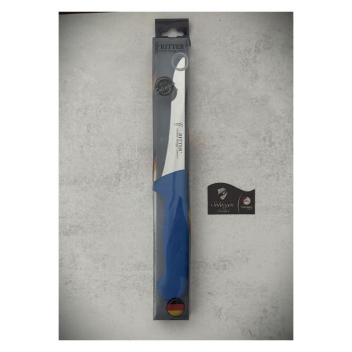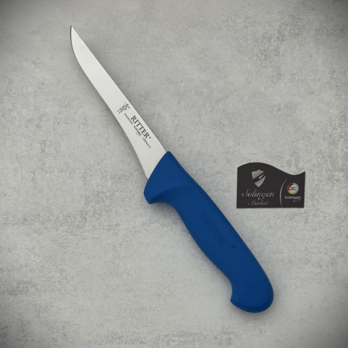 چاقوی استخوانگیری و فیلهکشی مدل جدید | برند زولینگن (Solingen) | ساخت آلمان | تیغه فولادی ضدزنگ ۱۵ سانتیمتری | رنگ آبی | طراحی ارگونومیک | مناسب برای آشپزخانه حرفهای، قصابی و کشتارگاه | مناسب برش دقیق گوشت مرغ و ماهی