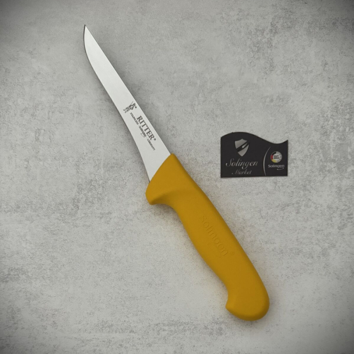 چاقوی استخوانگیری و فیلهکشی مدل جدید | برند زولینگن (Solingen) | ساخت آلمان | تیغه فولادی ضدزنگ ۱۵ سانتیمتری | رنگ زرد | طراحی ارگونومیک | مناسب برای آشپزخانه حرفهای، قصابی و کشتارگاه | مناسب برش دقیق گوشت و ماهی