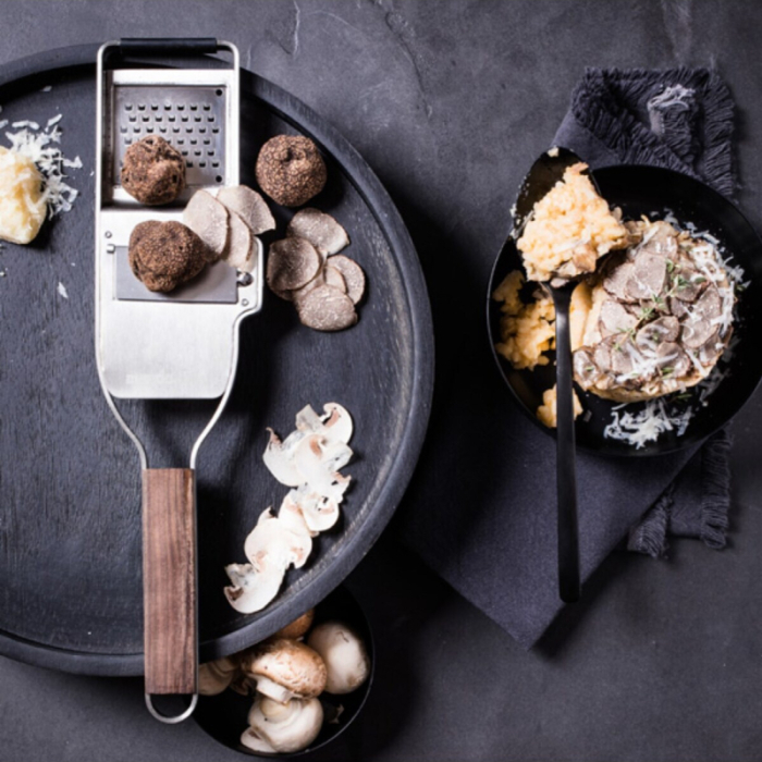 رنده و برش‌دهنده دوکاره میکروپلن Microplane مدل Master Trüf | طراحی حرفه‌ای برای برش و رنده‌کردن قارچ، ترافل، شکلات، پنیر و سبزیجات | تیغه فولادی ضدزنگ با برش دقیق | دسته چوبی ارگونومیک | ساخت آمریکا | مناسب برای آشپزخانه‌های حرفه‌ای و خانگی