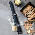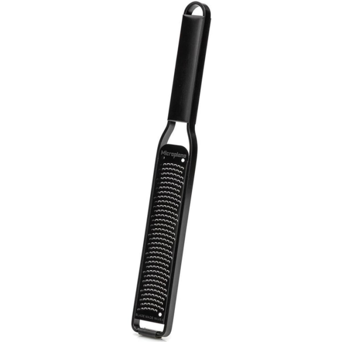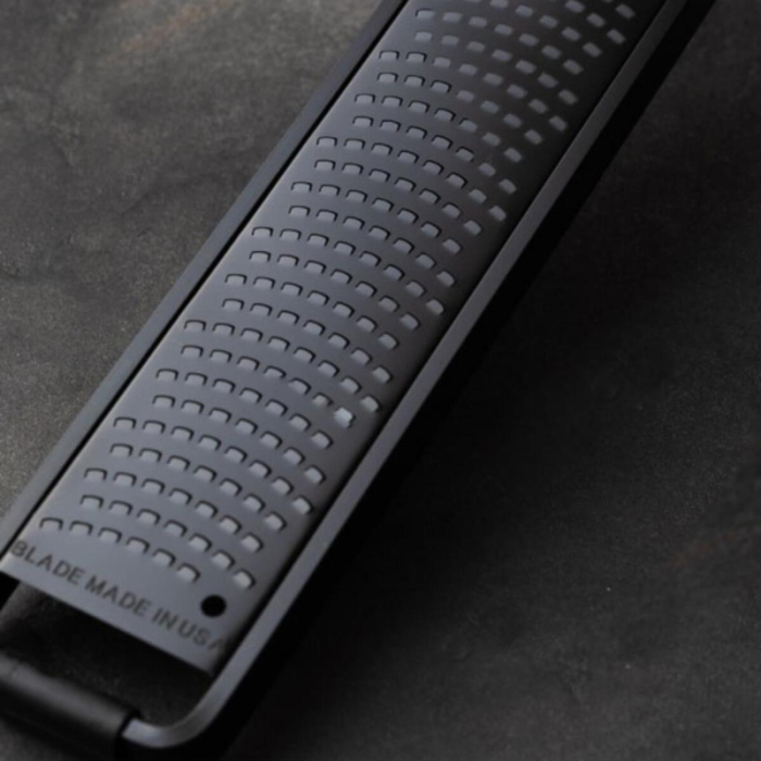 رنده پوستگیر کلاسیک بلک شیپ میکروپلن Microplane مدل 43020e | طراحی تمامسیاه با پوشش PVD ضدخش | تیغه فوقتیز از فولاد ضدزنگ با فناوری برش نوری | مناسب برای پوستگیری مرکبات، پنیر سخت، شکلات، زنجبیل، سیر، جوز هندی و قارچ | پایه ضدلغزش برای ایمنی بیشتر | ساخت آمریکا | برنده جایزه طراحی Reddot | قابل شستوشو در ماشین ظرفشویی