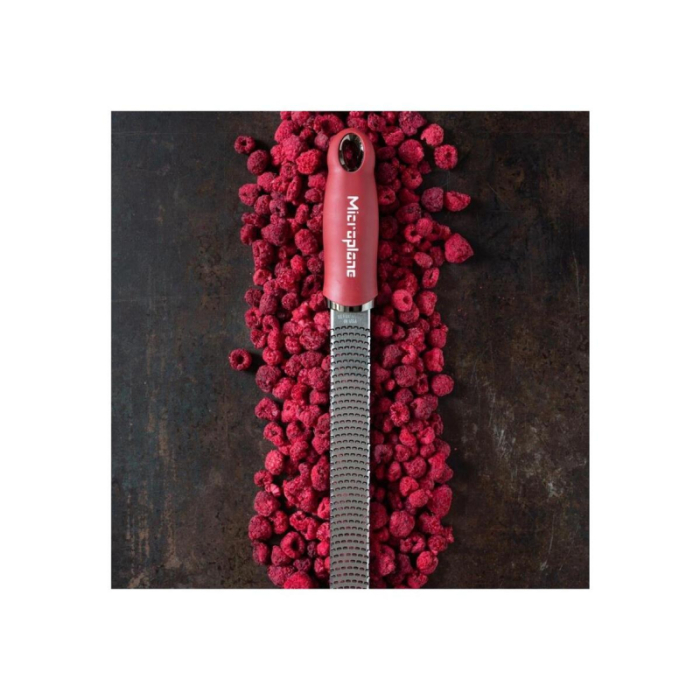 رنده پوستگیر کلاسیک پریمیوم میکروپلن Microplane | رنگ قرمز اناری | تیغه فوقتیز از فولاد ضدزنگ با فناوری برش نوری | مناسب برای پوستگیری مرکبات، پنیر سخت، شکلات، زنجبیل، سیر، جوز هندی و ادویهجات | طراحی ارگونومیک با دسته نرم و پایه ضدلغزش | ساخت آمریکا | قابل شستوشو در ماشین ظرفشویی
