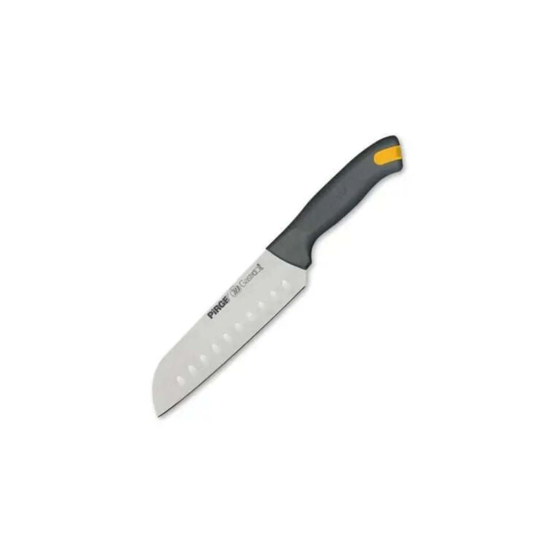 چاقوی سانتوکو Pirge مدل گاسترو | تیغه فولادی ضدزنگ با آلیاژ DIN 1.4116 | طول تیغه ۱۷ سانتیمتر | طراحی اولُک دار برای کاهش چسبندگی مواد غذایی | فرآیند حرارتی انجمادی برای افزایش سختی | لبه دو بار تیز و پولیش شده | دسته ارگونومیک از پلاستیک PP تزریقی | مناسب برای برش، خرد کردن و آماده سازی سبزیجات، گوشت و ماهی