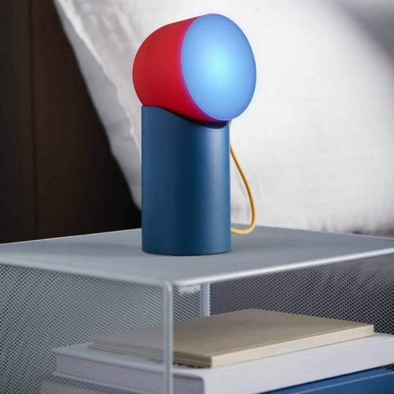 چراغ LED رومیزی Lexon لکسون Orbe | طراحی مدرن و مینیمال | رنگ ترکیبی آبی و قرمز | نور LED با شدت قابل تنظیم | بدنه مقاوم و سبک | مناسب برای اتاق خواب، دفتر کار و فضاهای دکوراسیون مدرن | ابزاری کاربردی برای روشنایی و زیبایی محیط