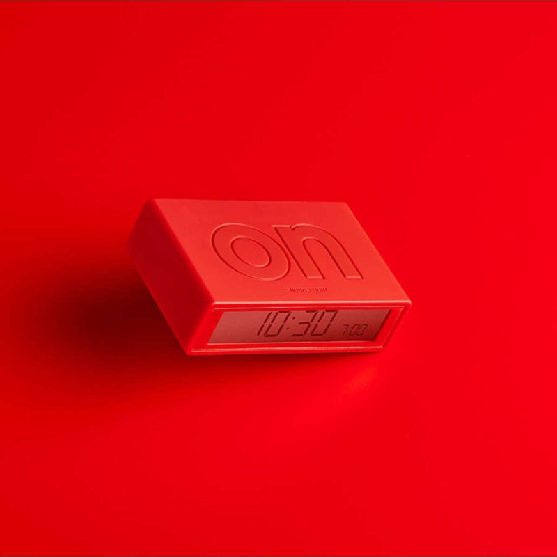 ساعت رومیزی زنگدار Lexon لکسون Flip Plus LR150R9 | طراحی مدرن و مینیمال | رنگ قرمز | نمایشگر دیجیتال خوانا | قابلیت تغییر وضعیت روشن/خاموش با چرخش ساعت (Flip) | باتری قابل شارژ | مناسب برای اتاق خواب، دفتر کار و دکوراسیون مدرن