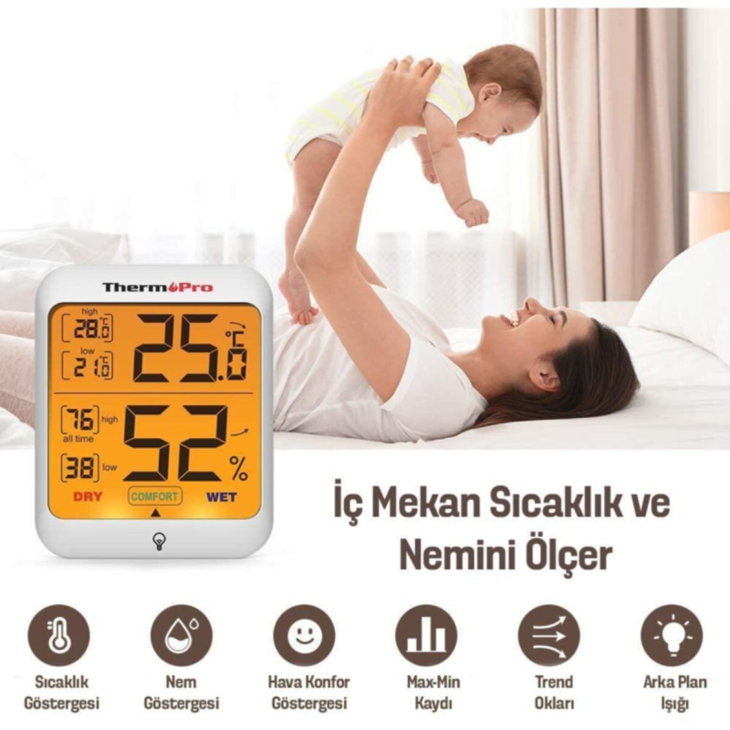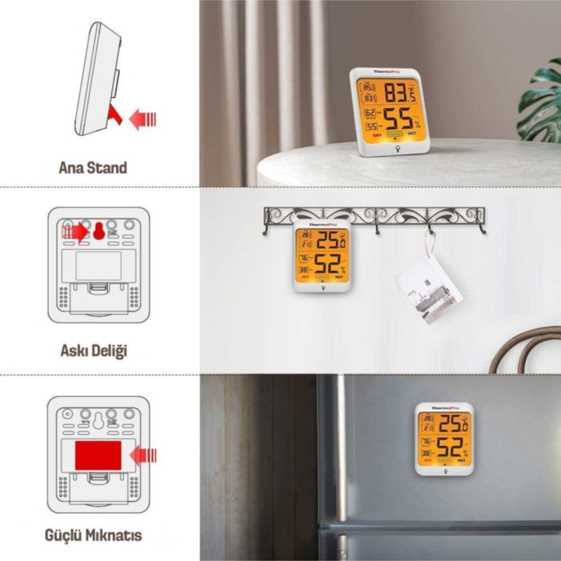 ترمومتر دیجیتال ThermoPro TP53 | اندازهگیری دما و رطوبت محیط داخلی | مجهز به صفحه نمایش بزرگ LCD | نمایش سریع و دقیق شرایط محیطی | ابزار حرفهای برای خانه، دفتر و محیطهای آموزشی