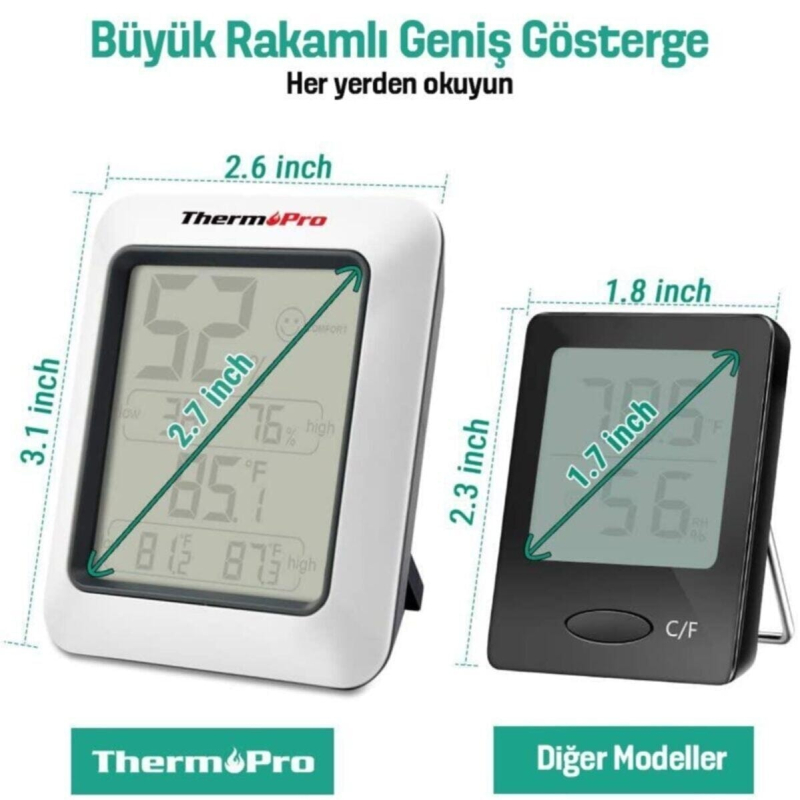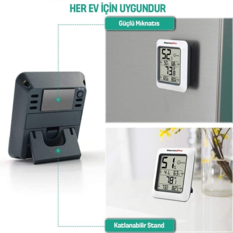 ترمومتر دیجیتال ThermoPro TP50 | اندازهگیری دما و رطوبت محیط داخلی | مجهز به صفحه نمایش LCD | نمایش سریع و دقیق شرایط محیطی ماکزیمم مینیمم | ابزار حرفهای برای خانه، دفتر و محیطهای آموزشی