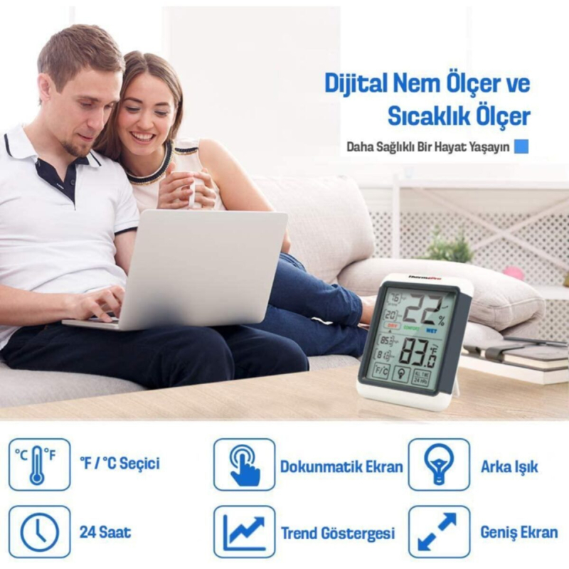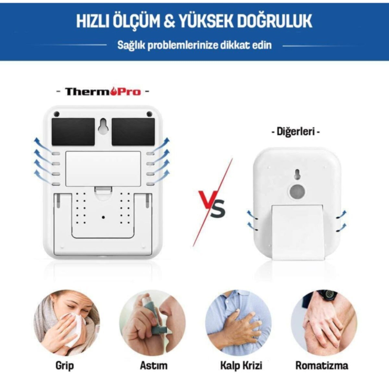 ترمومتر دیجیتال ThermoPro TP55 | اندازهگیری دما و رطوبت محیط داخلی | مجهز به صفحه نمایش بزرگ LCD با نور پسزمینه | نمایش سریع و دقیق شرایط محیطی | ابزار حرفهای برای خانه، دفتر و محیطهای آموزشی