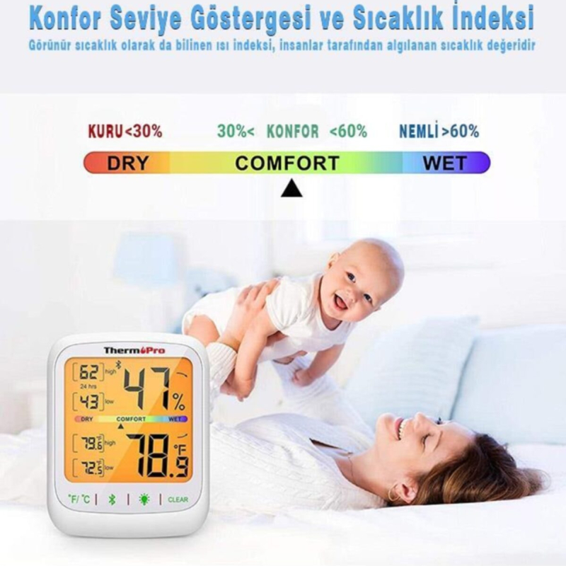 ترمومتر دیجیتال هوشمند ThermoPro TP359 | اندازهگیری دما و رطوبت محیط داخلی | اتصال هوشمند و نمایش دقیق | طراحی مدرن و قابل حمل | ابزار حرفهای برای خانه، دفتر و محیطهای آموزشی