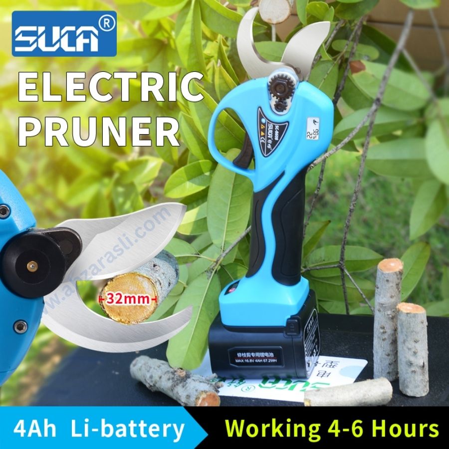 قیچی هرس شارژی سوکا suca SC-8608 | برش شاخه ۳۲ میلیمتر دارای سیستم ایمنی برش انگشت، با نمایشگر