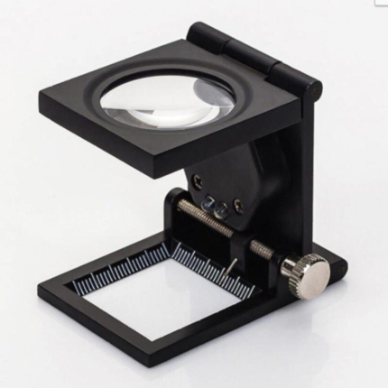 ذرهبین فلزی تاشو Nikula 10x | لنز 28 میلیمتری با بزرگنمایی 10 برابر | مجهز به دو چراغ LED برای دید بهتر | طراحی تاشو با شمارشگر داخلی | مناسب برای صنایع نساجی، تعمیرات و کارهای دقیق