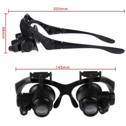 عینک ذرهبین تعمیراتی Nikula | مدل عینکی با لنزهای قابل تعویض 10x، 15x، 20x و 25x | مجهز به چراغ LED برای دید بهتر | طراحی سبک و ارگونومیک | مناسب برای تعمیرات دقیق، کارهای هنری و مطالعه