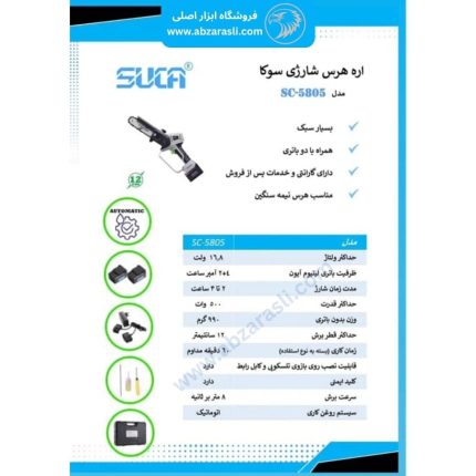 اره باغبانی شارژی سوکا SUCA SC-5805D دو باتری | اره زنجیری بیسیم برای هرس