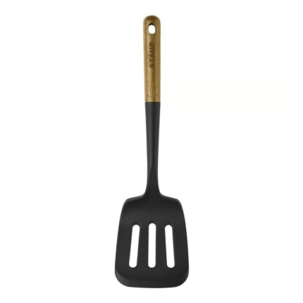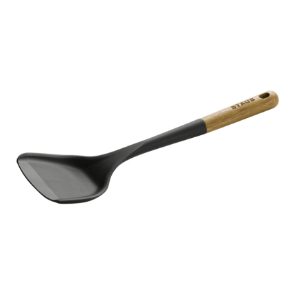 قاشق سرو سیلیکونی مشکی ۳۰ سانتیمتری با دسته چوبی آکاسیا | مناسب برای ظروف نچسب | طراحی زیبا و کاربردی | مقاوم در برابر حرارت | انتخابی اقتصادی برای آشپزی روزمره