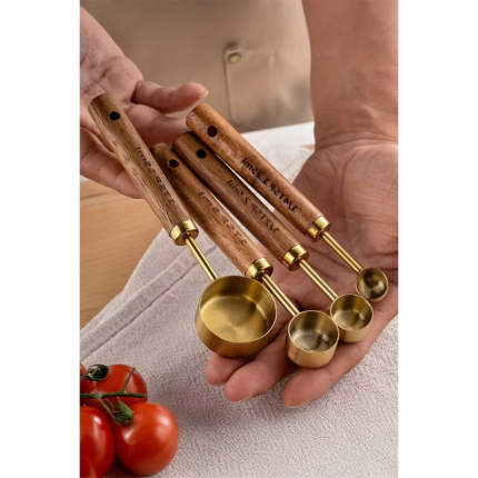 ست ۴ عددی قاشق اندازهگیری استیل ضدزنگ با دسته چوبی برند پروتی | شامل ۱.۲۵ml، ۲.۵ml، ۵ml، ۱۵ml | مناسب برای اندازهگیری دقیق مواد غذایی | طراحی زیبا و کاربردی